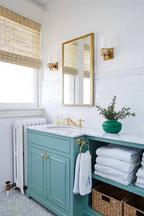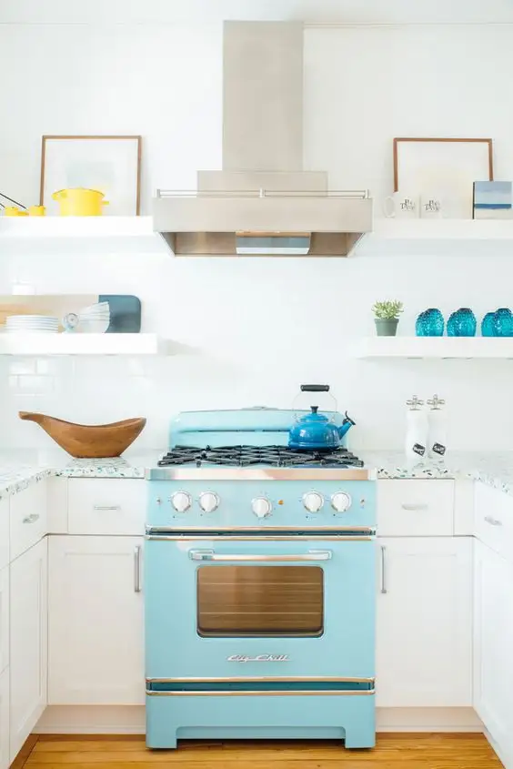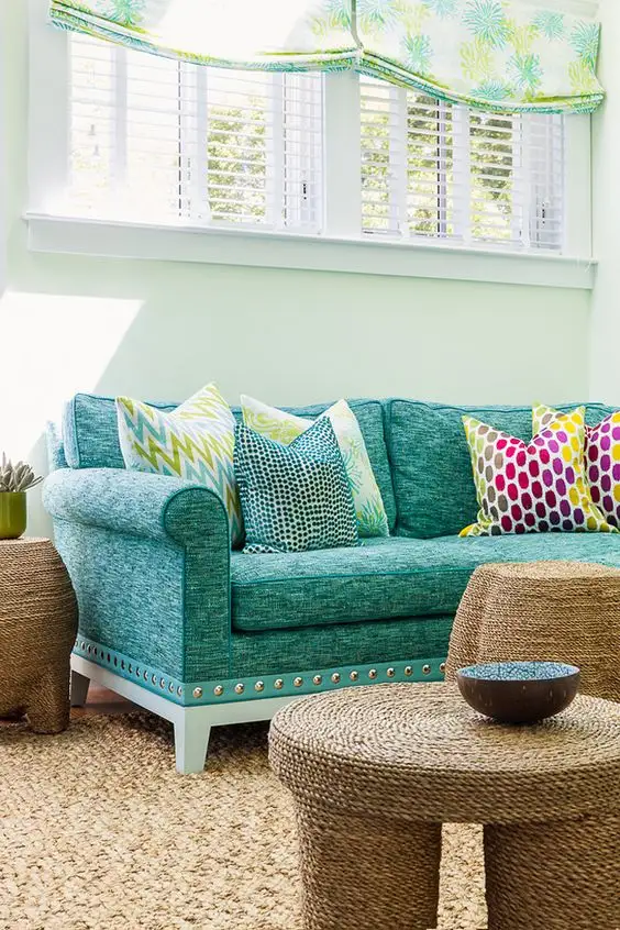 Plaseaza turcoazul in diferite doze prin vase decorative, covoare sau o piesa cheie prezenta in camera, asa cum este usa livingului sau frigiderul din bucatarie.