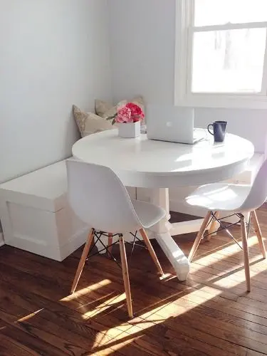 Cele cu spatare vor ocupa loc si vor sta permanent in jurul mesei; cele pliabile ofera posibilitatea de a le strange si a mai salva spatiu atunci cand e nevoie, iar cele tip taburet pot fi introduse sub masa, eliberand din nou loc pretios pentru camera.