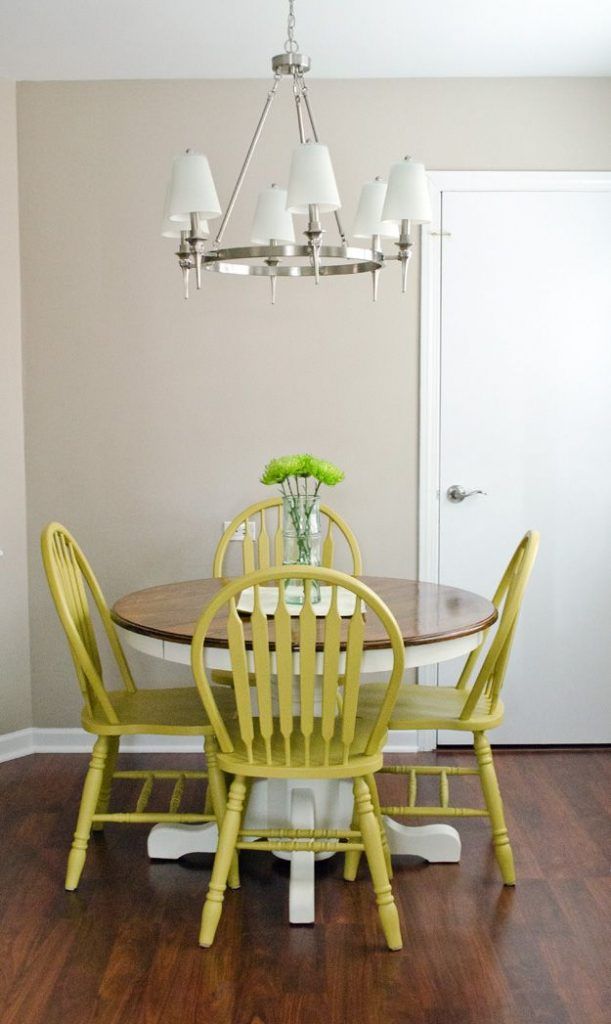 Cele cu spatare vor ocupa loc si vor sta permanent in jurul mesei; cele pliabile ofera posibilitatea de a le strange si a mai salva spatiu atunci cand e nevoie, iar cele tip taburet pot fi introduse sub masa, eliberand din nou loc pretios pentru camera.