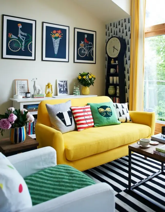 Daca totusi iti doresti accente de griuri si/sau negru, culori saturate, asigura-te ca exista un echilibru intre ele si, mai ales, ca exista suficienta lumina care sa deschida spatiul si sa le puna in valoare.