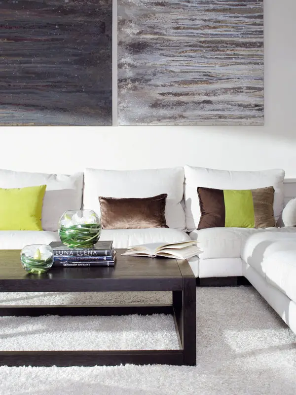 Mergi pe ideea de contraste. Nu lasa tot decorul alb. O masuta de cafea maro-brun sau neagra, tablouri cu rame negre sau pernute decorative in diverse nuante care sa puna in valoare canapeaua, iata doar cateva variante de luat in considerare. Nu abuza insa! Prea multe culori laolalta, prea multe contraste, vor crea un efect neplacut.