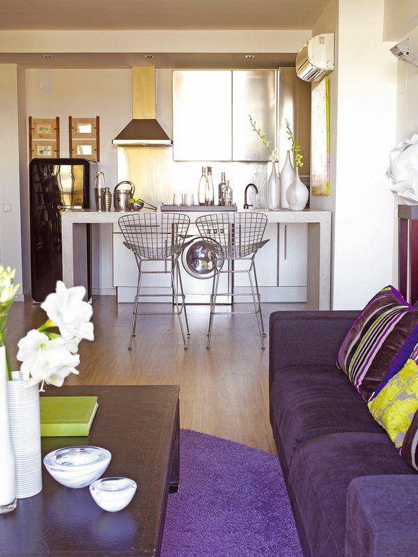 Simplitatea n-a fost nicicand mai frumoasa ca in aceasta amenajare. Remarcati ce bine se integreaza canapeaua in peisajul neutru al camerei. Ne place tabloul cu tematica abstracta!