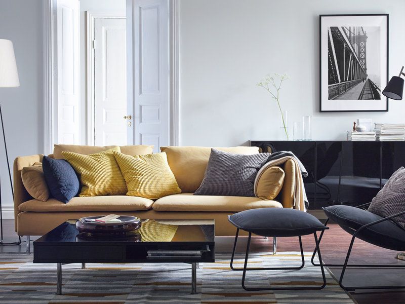 Mergi pe ideea de contraste. O masuta de cafea maro-brun sau neagra, tablouri cu rame negre sau pernute decorative in diverse nuante care sa puna in valoare canapeaua precum in acest exemplu excelent ilustrat