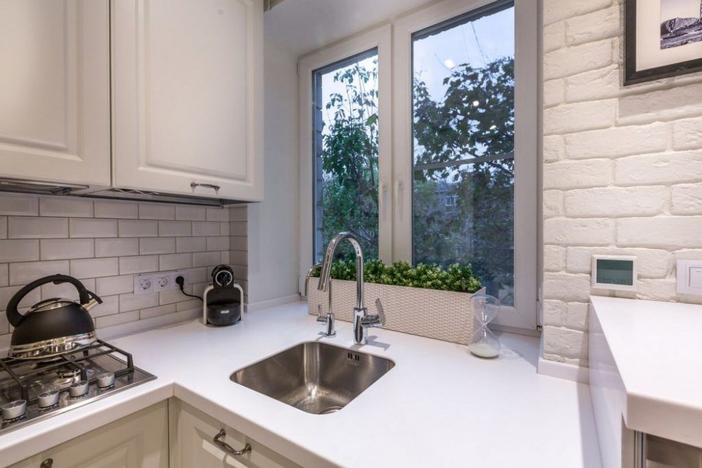 Deschide GaleriaIn zona de zi au gandit o amenajare in care bucataria se impleteste cu livingul, unite prin locul de luat masa. S-au concentrat pe a obtine o bucatarie functionala in perimetrul destinat, iar in continuarea ei sa dezvolte o zona de sufragerie, cu masa, scaune si o canapea, dar si un televizor suspendat. Abordarea e minimala, cu mobilier strict necesar, cu accent pe iluminatul artificial uniform distribuit in toata camera. Astfel, spatiul pare mai mare, mai amplu. Pentru un plus de stil, peretele cu ferestrele a fost placat cu caramida alba aparenta.