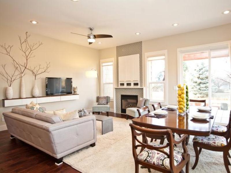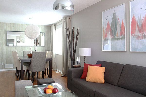 Intr-un open space, alegerea tonurilor si tentelor ale aceleasi nuante functioneaza foarte bine intrucat veti reusi sa sa scoateti in evidenta anumite zone ale incaperii, cum ar fi diningul, de exemplu.