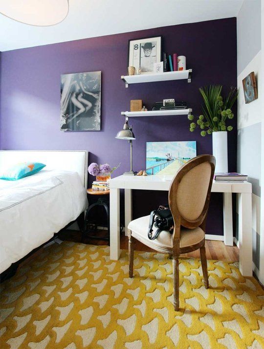 Mov si galben intr-o combinatie interesanta pentru un dormitor