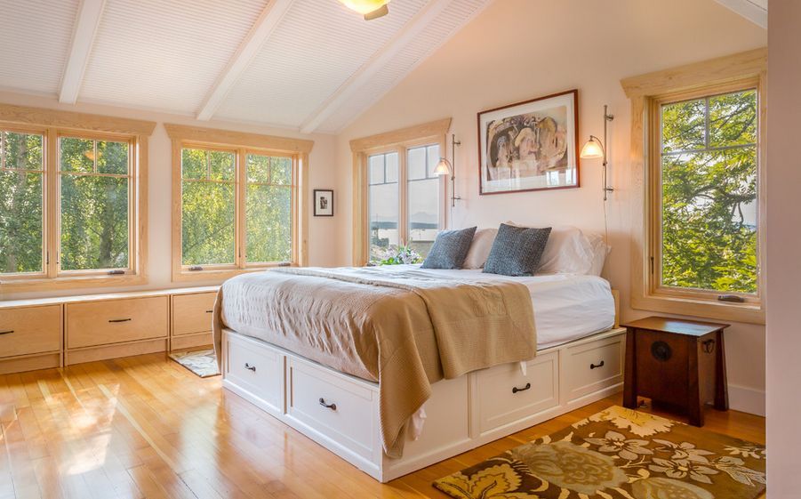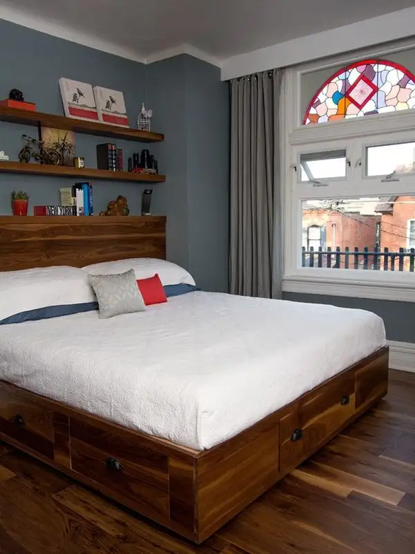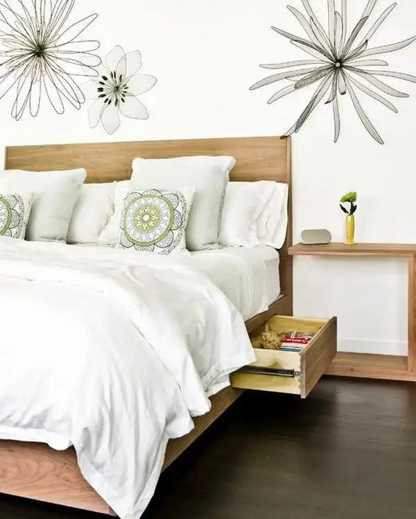 Din nou, pentru saltele pozitionate pe un cadru realizat din lemn, sertarele pot fi ascunse cu usurinta sub acesta. In acest fel, acestea vor acorda spatiu pretios fara a interveni in schema de decor a camerei.