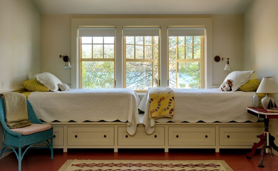 Doua paturi pot imparti cu succes acelasi cadru! Descopera un mod creativ de a economisi spatiu si de a obtine mai mult loc pentru depozitare. Daca te hotarasti sa iti faci un pat la comanda, atunci acorda-ti libertatea de a adauga si niste sertare pe dimensiunile dorite.