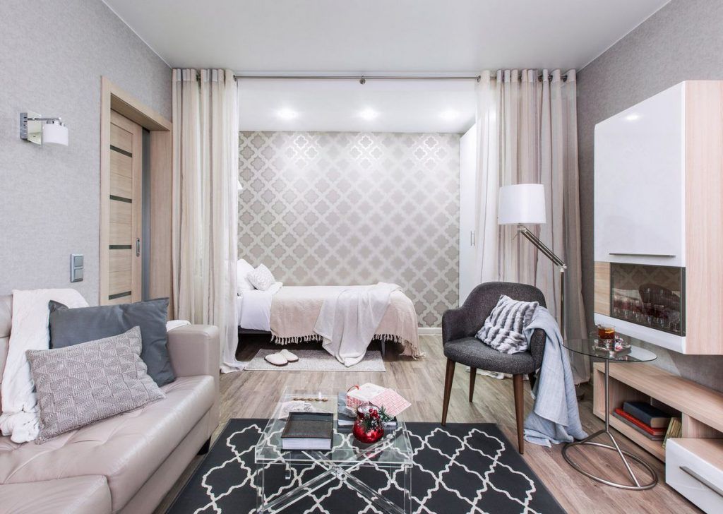 Imprimeurile discrete (vezi cum modelul covorului reia imprimeul tapetului), nuantele calde, precum si iluminatul artificial bine redat pentru fiecare functiune in parte ajuta la conturarea unui apartament modern, placut pentru locuit. Desi exista mai multe zone integrate intr-o singura incapere, spatiul nu pare aglomerat sau incarcat cu mobilier si accesorii. Decorul astfel creat inspira armonie si stare de bine.