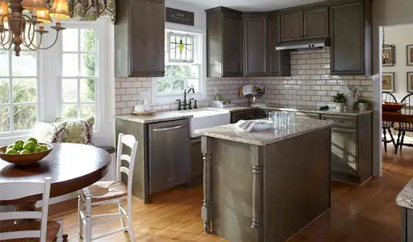 Placarile din lemn pot fi si ele o varianta pentru cei care doresc un aspect mai rustic, apropiat de natura. Aveti grija sa nu supraaglomerati spatiul; in acest sens, utilizati lemnul pe o suprafata cat mai mica. Puteti incerca si cu piatra naturala: granitul pentru blatul de lucru sau travertin pentru a placa spatiul mic dintre dulap si blat.