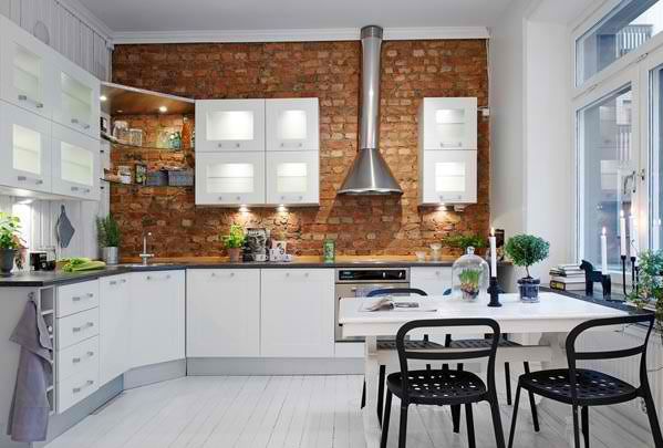 Oferiti bucatariei un decor modern cu tapet colorat sau cu elemente grafice specifice acestui spatiu. Puteti folosi stickere pentru flise, pe care sa le puteti dezlipi usor cand doriti o noua schimbare. Un trend care revine in design-ul de interior este caramida. Daca va simtiti confortabil cu aceasta idee, puteti crea un intreg perete din caramida.