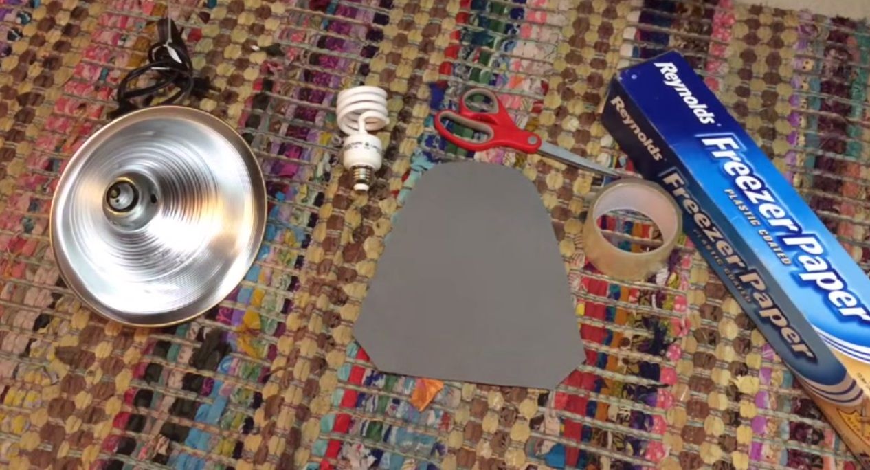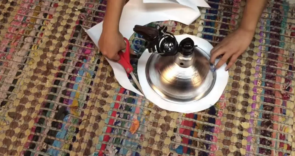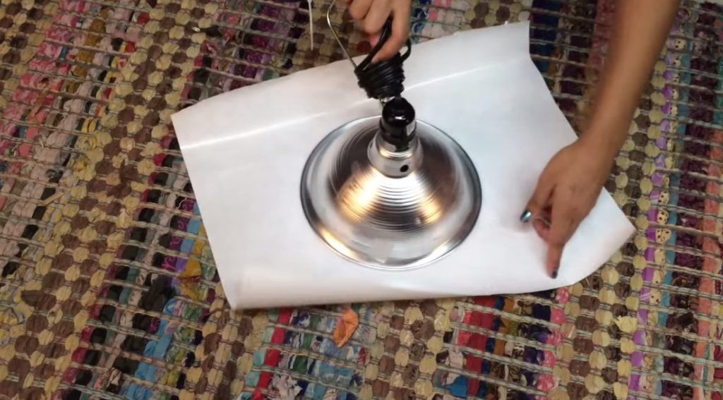 taie o bucata de hartie de copt de dimensiunea lampii metalice, cu un surplus de aproximativ 5 centimetri. Partea lucioasa a hartiei trebuie sa fie orientata spre bec, pentru a nu se supraincalzi si a lua foc hartia;