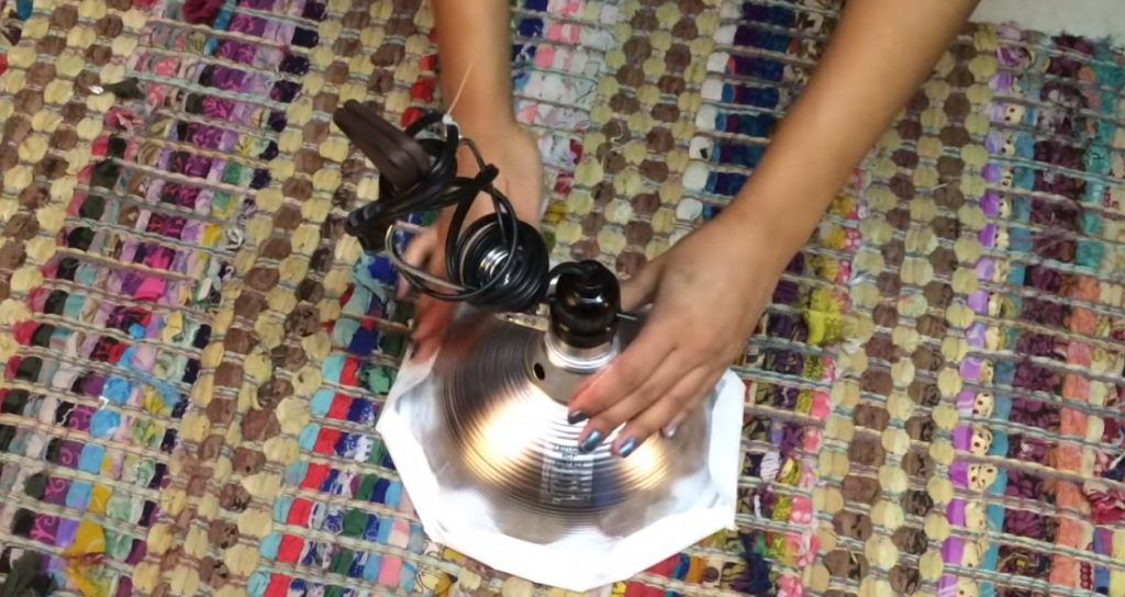 lipiti aceasta bucata rotunda de staniol in centrul lampii.