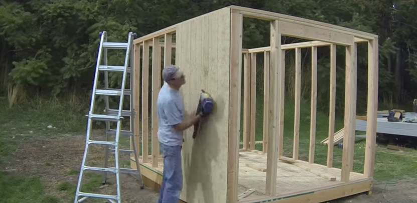 Printre primii pasi pe care trebuie sa-i faceti cunt pregatirea fundatiei din barne si pregatirea terenului. Este foarte important sa se urmareasca ca terenul sa fie drept iar forma viitoarei magazii sa fie perfect patrata. Dupa care urmeaza constructia podelei si acoperirea acesteia cu placa de USB. Va veti folosi de podea pentru a pune cap la cap si celelalte componente ale magaziei.