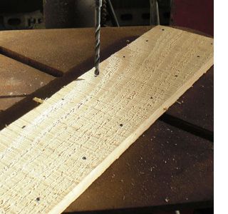 Cu bormasina si burghiul faceti gauri in scandurile rezultate din dezmembrarea paletului.