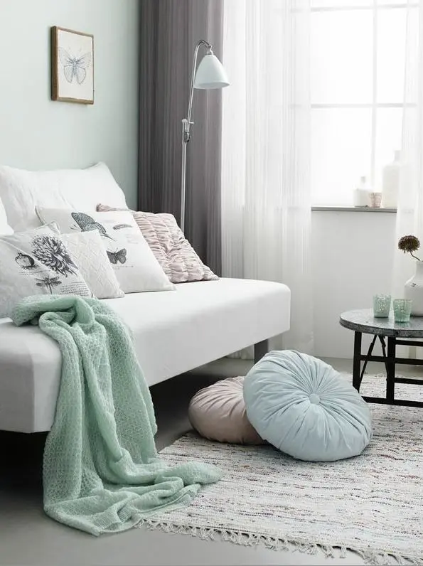 Iti recomandam si alte nuante precum bleu ciel, baby pink, mov lavanda, lila, verde menta, verde fistic, galben pai sau ivoire. Toate au acelasi efect proaspat asupra unei amenajari si in plus continua sa fie in tendintele de design interior si in anul 2015.