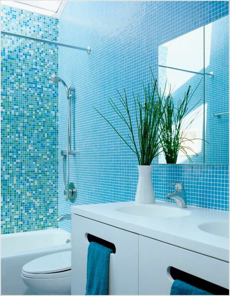 Optati sa montati faianta in nuante de turcoaz doar in zonele de stropire din jurul chiuvetei sau al dusului/cazii. Restul peretilor pastrati-i albi.