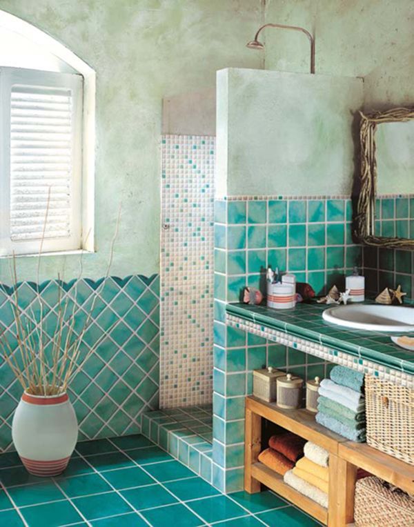 Asa cum acest tinut este scaldat de soarele puternic, o baie decorata in stil mediteranean capteaza din lumina solara pentru a-i pune in valoare caracterul deosebit. Pentru baile fara fereastra, realizarea acestui stil poate fi ingreunata, efectul nemaifiind acelasi.