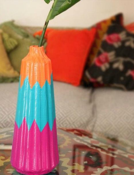 Lipeste banda adeziva in diferita culori si decupata in mai multe modele pentru a realiza o vaza unica cu un aspect handmade de apreciat