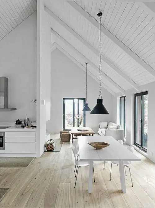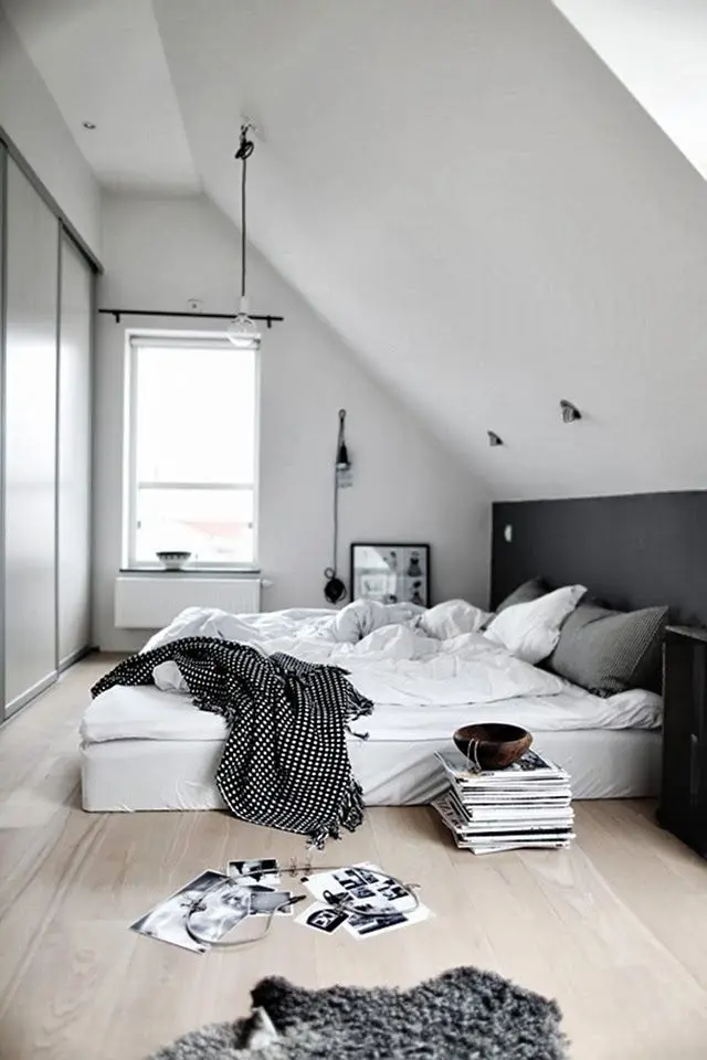 Puteti alege sa vopsiti peretii in alb si mobilierul incastrat in perete sa fie tot alb pentru a spori spatialitatea in incaperea respectiva. Corpurile de iluminat suspendate nu sunt recomandate din cauza inaltimii tavanului. Optati pentru aplice, lampadare sau lampi pentru iluminat de accent. Sunt mai practice si mai utile in astfel de spatii.