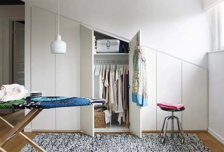 Zonele de la mansarda sau pod cu tavan inclinat pot fi amenajate ca dressing