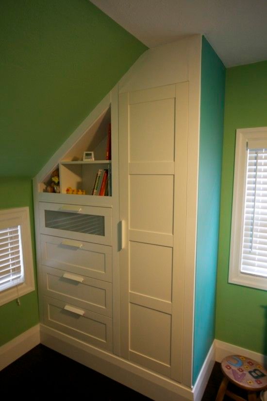 In cazul in care zona inclinata face parte dintr-o camera foarte mica, va recomandam sa ii oferiti un scop practic, cum ar fi spatiu pentru depozitare. Montati etajere de-a lungul peretelui si luati in considerare ce si cum veti depozita pe ele pentru a maximiza unghiurile.