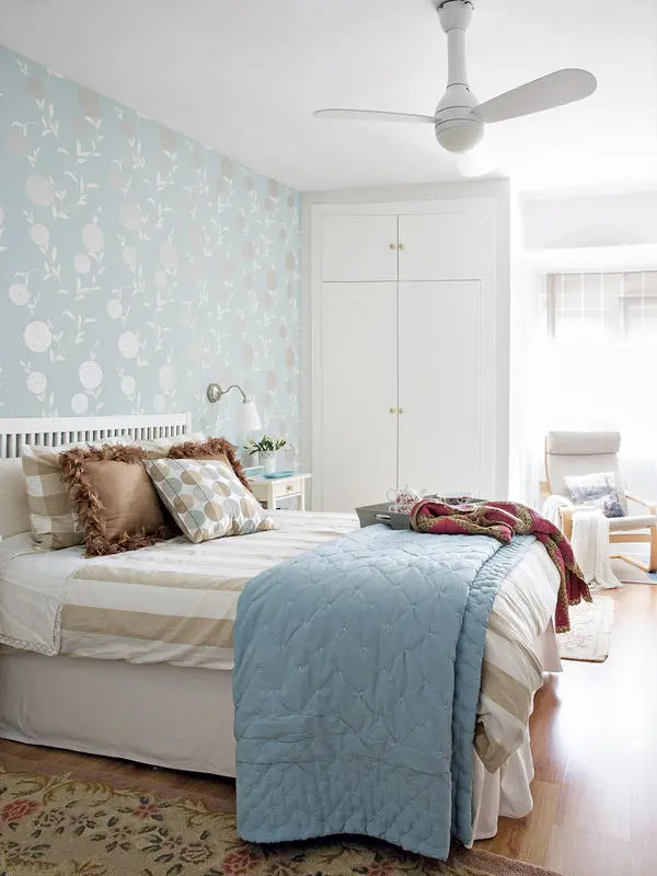 Daca peretii cu tapet sunt centrele de interes ale amenajarii, pardoseala contribuie la crearea unei unitati a spatiului amenajat, echilibrand decorul. Si tonurile de gri alaturi de alb reusesc sa puna in valoare modelele de tapet folosit.