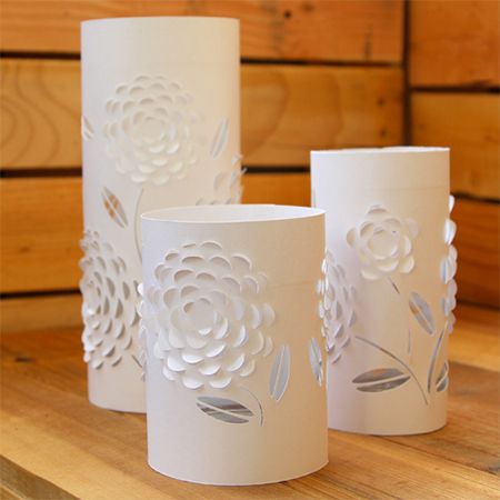 Aveti nevoie de carton, un tipar de model si un cutit sau cutter pentru a va realiza obiecte decorative inedite. Puteti folosi si recipiente de sticla, un bol sau borcan pe care sa fixati hartia cu modelul. Nu uitati si de dublu adeziv pentru a va usura sarcina.