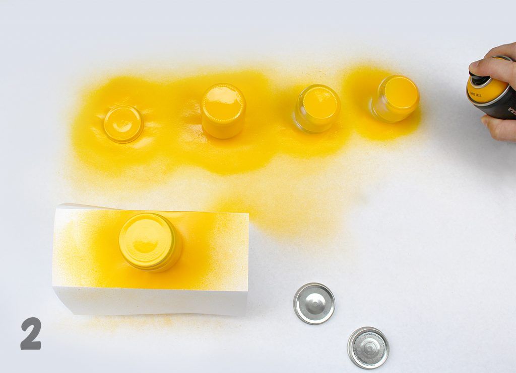 Puteti vopsi capacelele separat, sau puteti vopsi totul de-o data. Asteptati cateva minute si repetati procedura de vopsire – in acest fel, borcanelul va capata o culoare mata, puternica.