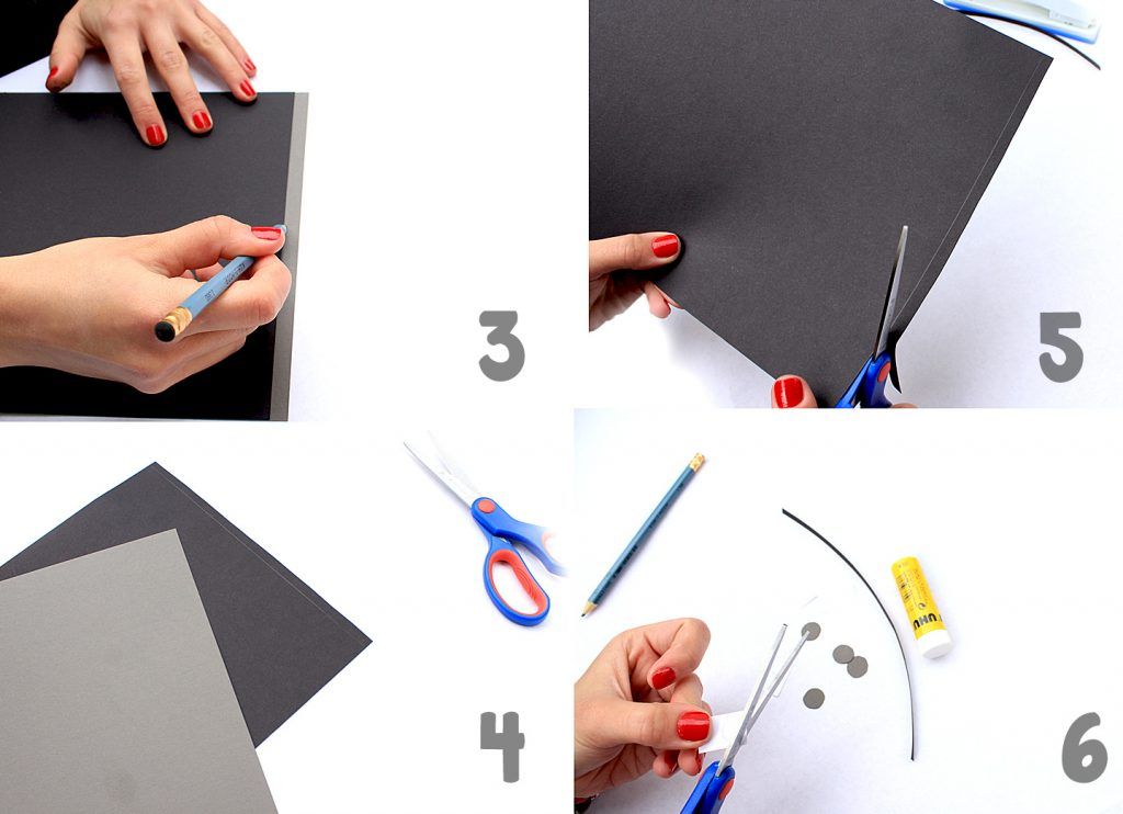 Pasii 4 si 5 – Decupati cu foarfeca banda neagra, incercand sa obtineti o taietura cat mai dreapta.