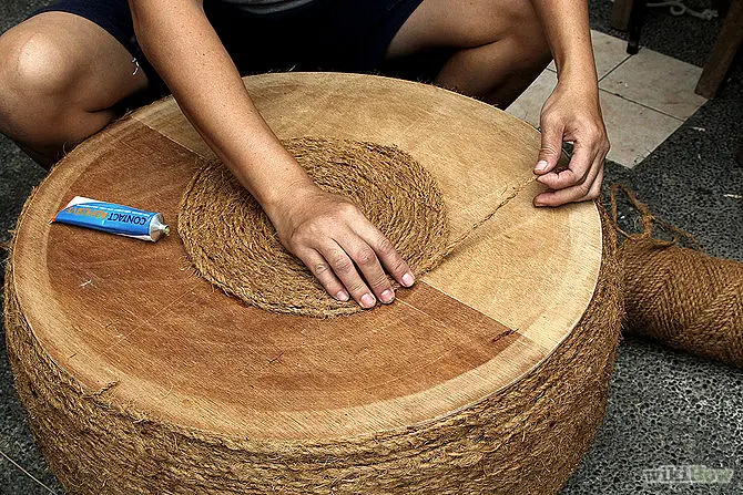 Aplicati adeziv pe cauciuc si infasurati sfoara in jurul acestuia la fel ca in imaginile de mai sus. Aveti grija sa nu lasati spatii libere. Procedati la fel si pentru placajul superior.