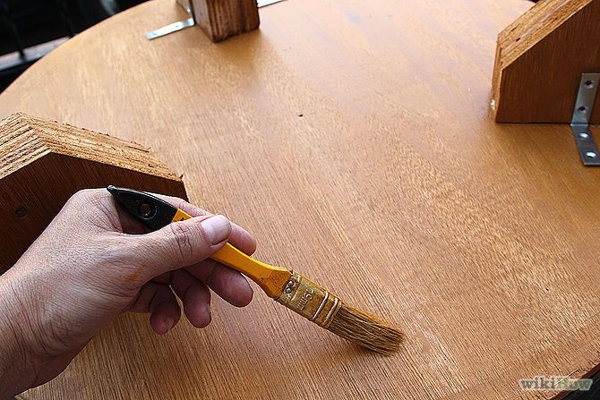 Lipiti apoi cele doua bucati de placaj pe cauciuc cu adeziv. Lacuiti picioarele de lemn ale masutei sau vopsiti-le dupa plac.