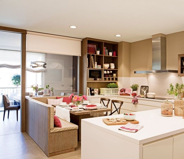 In functie de dimensiunea apartametului, din lipsa de spatiu, locul de luat masa se afla de cele mai multe ori in cadrul bucatariei. Aceasta zona trebuie sa fie un loc relaxant, unde sa poti lua masa intr-o atmosfera placuta. Aceasta este foarte mult influentata de ergonomia mobilierului, amplasarea mesei (nu in dreptul usii pentru a nu imprima efectul de viteza) si mai ales de iluminat.