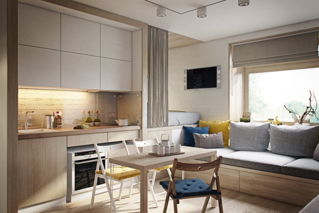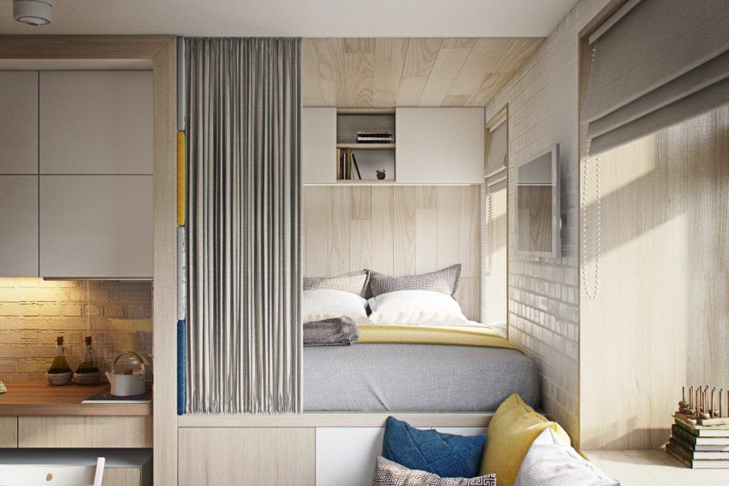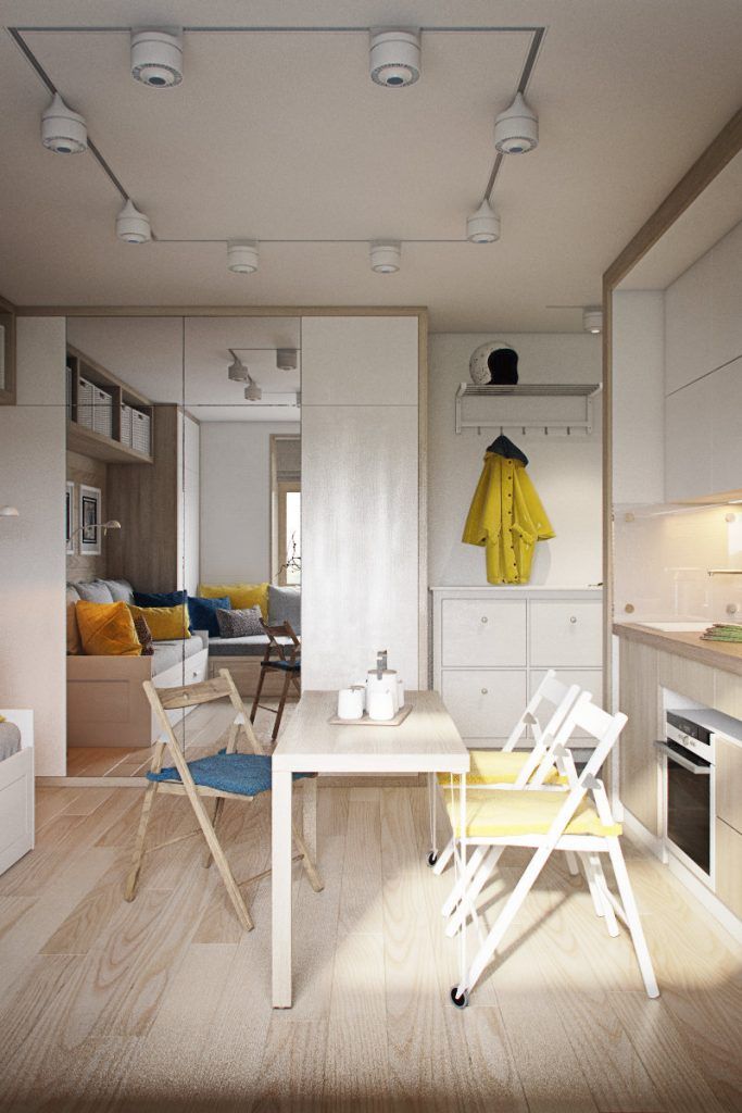 Spatiile mici ne tot apar in cale; astazi, am ales sa ne oprim asupra acestui apartament de doar 20 de metri patrati. Daca nu ti-ai putea imagina vreodata cum e sa locuiesti intr-un astfel de apartament, proiectul realizat de Olga si Yuri vine sa demonstreze ca se poate si mai ales cum. Haideti sa vedem in detaliu amenajarea.