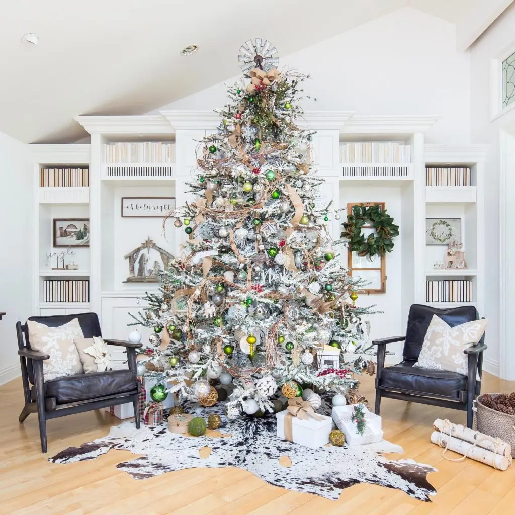 La baza bradului poti aseza alte luminite si un pled moale si pufos pe care pot sta cutiile de cadouri sau un cosulet care sa preia cateva elemente existente in brad. O mini-saniuta iarasi se va potrivi cu o tematica aleasa pe argintiu.