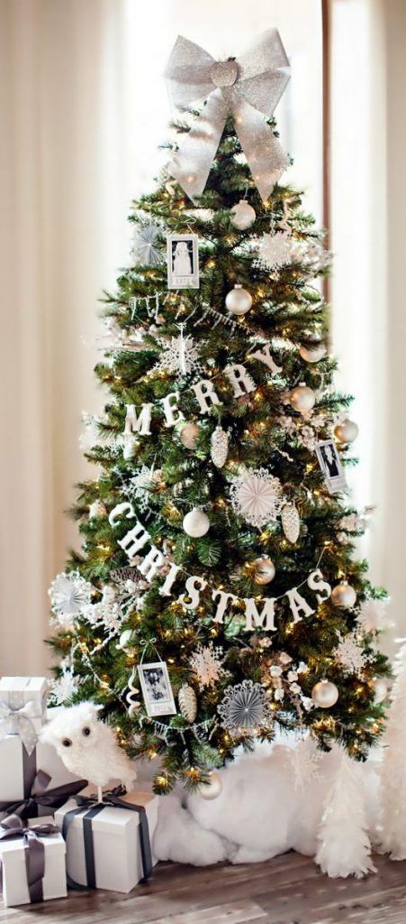 La baza bradului poti aseza alte luminite si un pled moale si pufos pe care pot sta cutiile de cadouri sau un cosulet care sa preia cateva elemente existente in brad. O mini-saniuta iarasi se va potrivi cu o tematica aleasa pe argintiu.