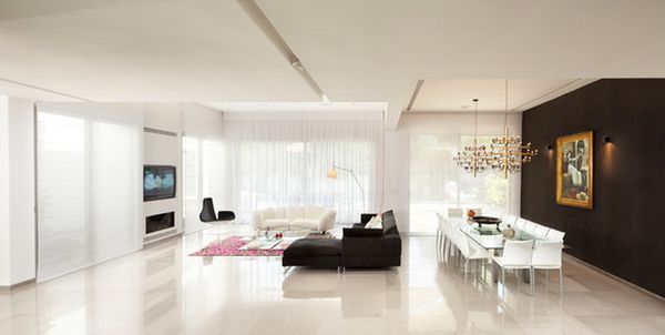 Asemanator, pentru un living cu prea mult alb, un perete negru va fi o solutie buna pentru a aduce un punct de interes. Pentru coeziunea elementelor, recomandam asortarea cu o piesa de mobilier tot neagra, cum ar fi canapeaua.