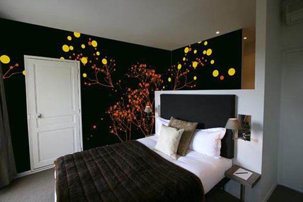 Negrul peste negru este monoton si nu ofera nimic spectaculos. Puteti alterna sau stratifica vizual accentele de culori. Daca peretele este negru si noptiera sau dulapul in aceeasi nuanta, adaugati decoratiuni albe sau colorate pentru a evidentia ambele elemente dar fara a parea obositor.