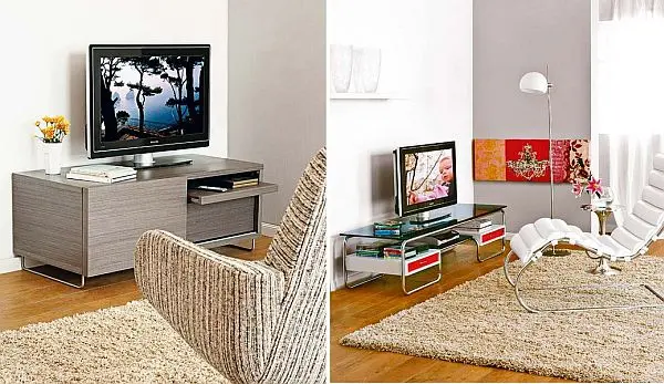 Pentru cei care folosesc tv-ul rar, o idee originala este de a-l ascunde . O usa glisanta va facilita acest lucru; cateva rafturi discrete vor acompania armonios decorul mobilei. Daca tv-ul se afla in spatiul dedicat biroului, poti folosi doua usi mari care sa-l acopere, in timp ce spatiul din dreapta sau stanga sa iti permita stocarea actelor si a altor documente.