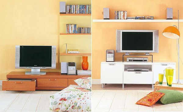 Deschide GaleriaO modalitate simpla de pozitionare este cea a unui dulap dedicat electronicelor; se poate alatura un dvd player, un sistem de boxe surround si chiar dvd-urile cu filmele preferate. Daca dulapul ocupa loc pretios, mergi pe varianta unor sertare fixe peste care sa asezi tv-ul. Variantele pot fi nenumarate: fie doua sertare supradimensionate, fie sertare mai mici cu spatiu de depozitare in mijloc. O masuta foarte joasa, fixa sau chiar pe role (pentru mobilitate) poate fi, de asemenea, un suport excelent.