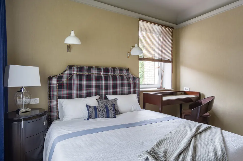 Dormitorul, fiind separat de celelalte incaperi, reuseste sa amestece intr-un mod omogen doua stiluri diferite: retro si modern. Elementele retro de regasesc in componente precum: cadrul patului sau asternuturi, prin evidentierea motivelor geometrice, birou, scaun si corpuri de iluminat.