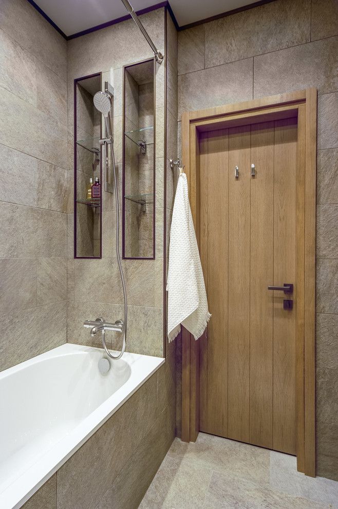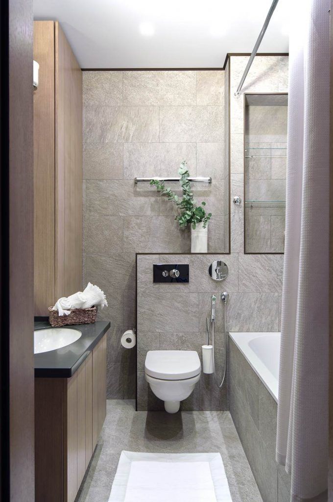 Pentru o baie mica, vom pune accent pe geometrie iar liniile vor fi cele care vor salva spatiul. Placile de lemn asezate pe lung pe toata suprafata, oglinda generoasa si profilele ascutite iti vor mari vizual incaperea si vor avea ca rezultat o baie moderna si contemporana.