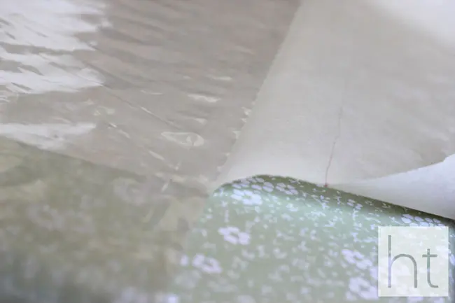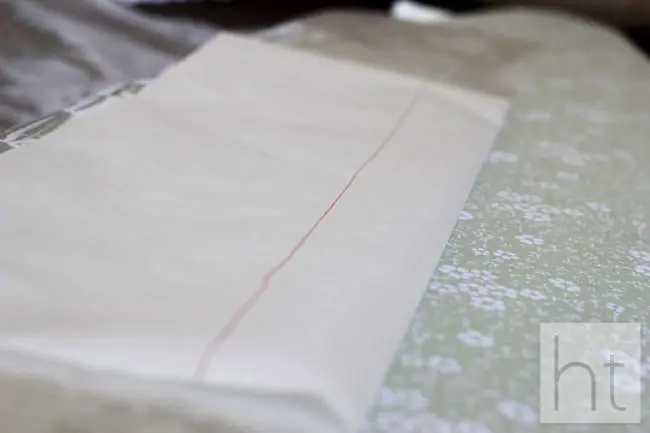 Desfaceti pergamentul, plasati marginile de plastic, impaturiti-l la loc si calcati cu fierul peste pergament incet si cu mare atentie, respectand linia desenata mai devreme. Plasticul se va topi si se va lipi. Nu desfaceti pergamentul imediat. Lasati sa se raceasca inainte.