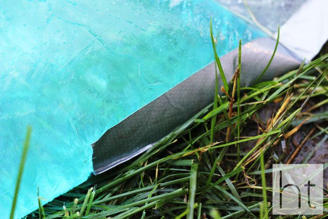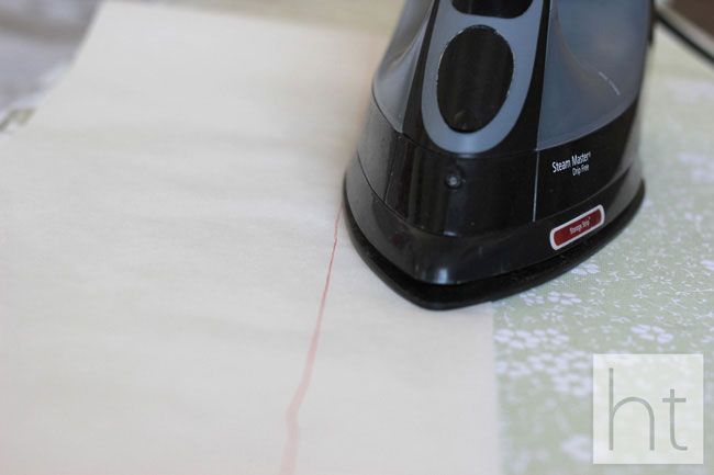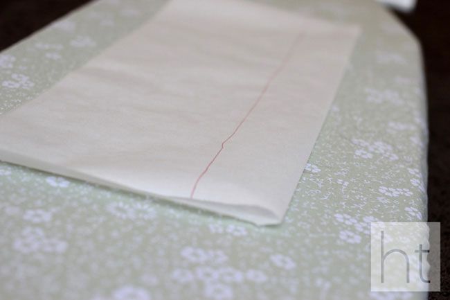 Desfaceti pergamentul, plasati marginile de plastic, impaturiti-l la loc si calcati cu fierul peste pergament incet si cu mare atentie, respectand linia desenata mai devreme. Plasticul se va topi si se va lipi. Nu desfaceti pergamentul imediat. Lasati sa se raceasca inainte.