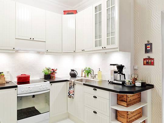 Albul impreuna cu un iluminat corect pot face minuni pentru o bucatarie mica.