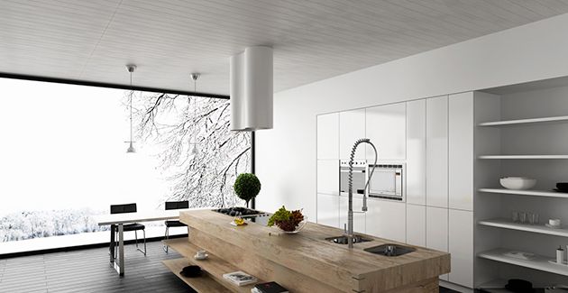 Mixul dintre alb si lemn este intotdeauna unul castigator. Mizeaza pe o astfel de imbinare pentru o bucatarie moderna