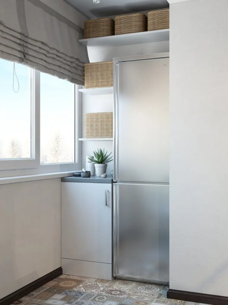 Recomandarea este ca frigiderul sa nu fie pozitionat in spatii unde poate fi afectat de caldura soarelui, insa o pozitionare pe nord sau nord-est a bucatariei permite acest lucru, acesta fiind si cazul in aceasta propunere de amenajare.