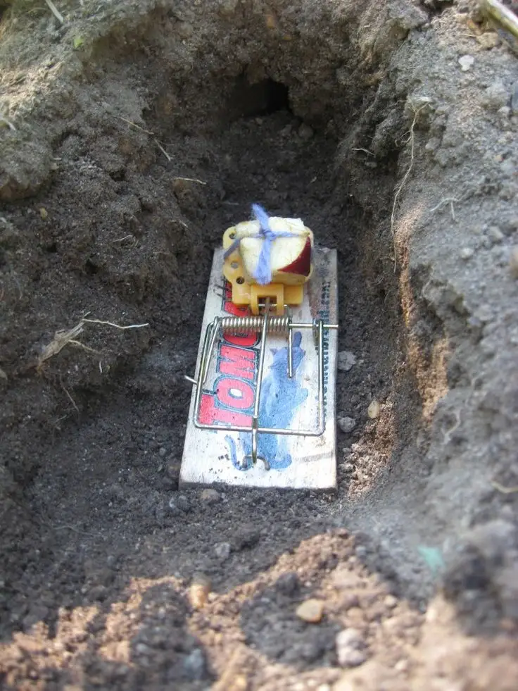 Soarecii de camp. Acestia se sperie de mirosuri foarte puternice cum ar fi cel de usturoi, sau mai putem pune in galerii crengi de tuia, catei de usturoi, capete de peste, sau sa turnam in ele solutie de soc. Soarecii se mai sperie si de zgomote puternice. Putem ingropa in pamant o bucata de teava metalica pe care o lovim zilnic cu ciocanul pana cand soarecii nu vor mai aparea in acea zona.
