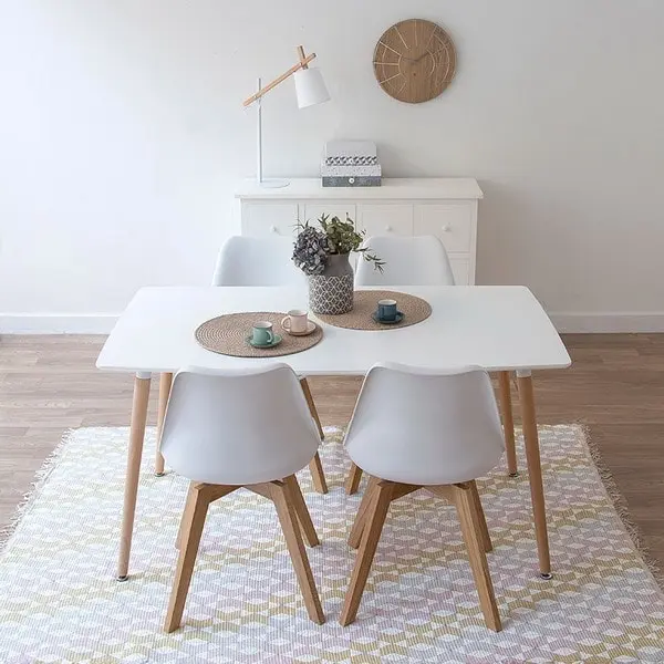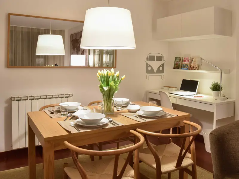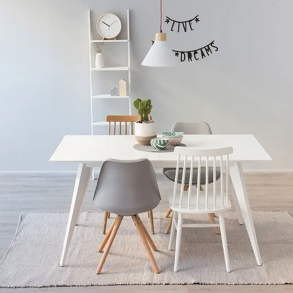 Iti recomandam sa mergi pe un stil cuminte, functional cu o masa de dimensiuni medii (preferabil extensibila pentru zilele festive) si scaune pe masura (poti adauga si o bancuta daca mergi pe un stil mai neconventional). Alege si un model de covor adecvatpe care sa-l asezi sub masa si scaune pentru a pune in valoare acest spatiu nou creat in cadrul amenajarii. Daca iti doresti ceva diferit, contemporan, te poti indrepta spre amenajarea unui loc de luat masa in stil scandinav, rustic sau vintage.