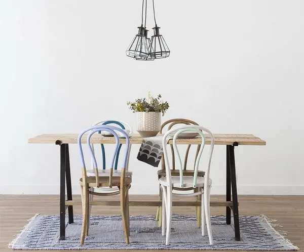 Daca stilul industrial iti surade, poti alege scaune metalice si o masa cu un blat din lemn cu aspect nefinisat. Astfel de abordari sunt la moda in ultimii ani. Si daca tot vorbim de trenduri, a prins foarte bine tendinta aceasta de a aduce la aceeasi masa scaune de diferite modele sau de diferite culori. Recomandam aceasta abordare pentru amenajari moderne, dinamice, luminoase, jucause in spatii tratate minimalist. Fie ca iti plac modernele scaune Eamessau pe cele vintage, cu un aer usor invechit (scaune vechi, reconditionate), important este ca stilul abordat sa fie unul coerent, in armonie cu decorul existent.